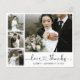 Orçamento, Elegante, Minimalista, Cartão de agradecimento de colagem de 4 fotos de casamento com letra manuscrita em preto e branco. Modelo de cartão moderno com quatro (4) fotos na frente e (1) uma foto no verso. Com o texto "Amor e gratidão" em uma tipografia manuscrita com fonte de caligrafia de coração. Personalize seu nome e adicione sua mensagem. Se você precisar de ajuda ou item correspondente, por favor entre em contato!