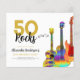 50 Rocks 50th convites de aniversário com três designs de guitarra legal de aquarela. Uma guitarra elétrica com padrão de chama Fire e guarda vermelha de picada, uma guitarra semissótica multicolorida e uma ilustração de arte acústica clássica psicodélica com tipografia legal personalizada negra e dourada. Esse modelo fácil de usar cria o convite perfeito para celebrar cinquenta no estilo rock n roll e é ideal para um guitarrista, músico e amante da música. Qualquer guitarrista lhe dirá que você nunca pode ter muitas guitarras. Este legal instrumento musical moderno design comemora a energia musical deste maravilhoso instrumento musical e é a forma perfeita de celebrar o quinquagésimo aniversário. Arte original da artista Catherine Sweetman