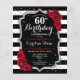 Convite de Aniversário de 60 anos dentro do Orçamento. Design elegante preto, branco e vermelho com brilho falso. Listras pretas e brancas com rosas vermelhas. Perfeito para uma festa de aniversário elegante. *** Por favor, note que este design será impresso em um papel de flyer muito fino e não vem com envelopes. Perfeito para convites econômicos. Se você está procurando pelo mesmo design, mas em papel mais grosso, por favor, visite nossa loja.