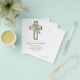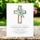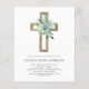 Convite de Batismo Religioso Cristão Aquarela de Vegetação Botânica Cruz de Folha de Eucalipto Verde e Folha Dourada Menino ou Menina Orçamento