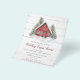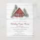 Convite à Casa Aberta de Feriado de Cabina de Aquarela Orçamentária - O nosso convite rústico inclui uma cabana natalina rodeada por pinheiros verdes e cheios de neve. O evento de Natal é uma tipografia bonito. O plano de fundo do convite é madeira branca e lavada em branco. O convite orçamental faz parte de uma coleção. Desenvolvido por Beverly Bainbridge Magnolia & Thistle