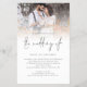 Uma excelente alternativa em PAPEL (não cartão) SEM ENVELOPES no tamanho MAIOR 5,5" x 8,5" e a um preço acessível. (Envelopes padrão A8 são o tamanho mais próximo para caber). Convite de Casamento com Código QR de Foto em PAPEL. Adicione seu código QR em seu site de casamento no verso para que seus convidados possam responder e ver todos os detalhes online sem a necessidade de inclusões separadas. Um conjunto informal de tipografia em preto para o título principal O Casamento complementa o restante do texto que você pode personalizar facilmente. Substitua a foto da amostra pela sua favorita.