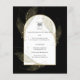 Apresentando um item de casamento de gravata negra suavemente formal com cores pretas e douradas adornadas com delicadas folhas de esqueleto de ouro sobre as bordas de uma armação arcaica. Este design faz parte de uma coleção de coordenação e inclui itens como cartões RSVP, salvamento de datas, convites, sinais de boas-vindas, adesivos, programas, cartões de número de tabela, bolsas de favorecimento, menus e etiquetas de garrafas de vinho, bem como uma variedade de tipos de cartão e papel para ajustado de qualquer orçamento. Esta design seria adequada para os seguintes temas de casamento: casamentos temáticos, casamentos temáticos caindo ou românticos, casamentos temáticos de outono ou jardim ou casamentos temáticos ao ar livre, casamentos temáticos russos ou boêmicos, contos de fada ou encantados, casamentos temáticos de vintage ou chique, casamentos clássicos ou eternos, Elegante ou em escala superior Casamentos.