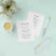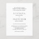 Preto e branco elegantes, todos em um convite de casamento orçamentário (impresso em papel fino; envelopes NÃO incluídos) com um design simples e mínimo com os nomes da noiva e do noivo em uma fonte serif tradicional e o meio e os sobrenomes em um roteiro elegante de caligrafia. A parte traseira tem os seus detalhes de convidado, bem como um código QR opcional. Se preferir, você pode remover o código QR na ferramenta de edição de design. Um estilo clássico que é perfeito para um casamento formal.