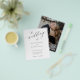 Convite de casamento elegante e moderno em preto e branco em papel de baixo custo com texto "o casamento de" em caligrafia sofisticada e seu QR CODE (gerado automaticamente). Personalize com sua foto de noivado no verso e seu texto. ++++++++++ Este convite de casamento atemporal é adequado para cerimônias e recepções de casamento formais de estilo moderno. +++++++++++++++++++++++++++++++++++ POR FAVOR LEIA ANTES DE COMPRAR! Este é um cartão de baixo custo impresso em papel FLYER. ++++ Por favor, note que o PAPEL DE BAIXO CUSTO É FINO - Você pode atualizar para ter este cartão impresso em papel cartão ++++ ENVELOPES NÃO INCLUSOS. +++ Verifique todas as informações e ortografia do seu texto porque você receberá exatamente o que vê - ninguém mais verificará nada antes da impressão. ++++ Este cartão é projetado para o tamanho 4,5" x 5,6". Caso escolha outro tamanho do cartão e o texto ultrapasse a página, tudo precisará ser corrigido antes de adicionar o produto ao carrinho. Por favor, peça ajuda ao Serviço de Design