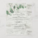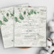 convites de casamento de eucalipto com folhagem verde, design botânico contemporâneo simples, suporte de madeira branca