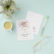 Para um casamento elegante e moderno. Um fundo branco elegante. Decorado com flores cor-de-rosa douradas e brancas, rosas e folhagens prateadas falsas. Personalize e adicione nomes e detalhes.