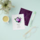 Elegante convite de casamento com flores roxas e folhagem verde com verso damasco desgastado vintage personalizável para os detalhes do seu evento. Ideal para qualquer tema ou casamento no jardim. Os envelopes não estão incluídos. Para convites mais grossos com envelopes incluídos e produtos correspondentes no mesmo tema, por favor veja a coleção abaixo.