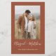 Orçamento Personalize este Boho Terracotta Queimado Laranja Simples e Elegante Duplo Lado com foto no Convite de volta com sua mensagem e detalhes. Este convite chic inclui a tipografia simples, na moda, moderna e elegante, para a celebração especial do Casamento a Ser.