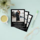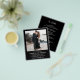 Convite de casamento com orçamento fotográfico moderno (impresso em papel de folheto - envelopes não incluídos) apresentando um design minimalista com sua foto favorita sobre um fundo preto. Abaixo estão os detalhes do seu evento em uma combinação de fontes sans serif simples e uma escrita elegante. O verso tem detalhes adicionais com código QR opcional (pode remover o código QR na ferramenta de edição de design). Este convite elegante seria ótimo para um casamento com tema gótico ou de Halloween.