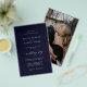 Barato PAPER FLYER, um simples mínimo de fotos personalizadas do modelo de orçamento branco escuro, meia-noite marinho azul convite para casamento, com um roteiro clássico de caligrafia na moda. +++++++++++++ Fácil de personalizar com seus detalhes e foto! O convite é adequado para casamentos formais modernos. ++++++++++++++++ NOTA que a cor de fundo pode ser alterada para corresponder ao esquema de cor do casamento. Se for confortável, você pode alterá-lo depois de selecionar a opção PERSONALIZAR TI. ++++++++++++++++++ LEIA ISSO ANTES DE COMPRAR! Este é um programa de barato de baixo orçamento impresso em um FLYER (papel de tipo de anúncio). +++ Observe que O PAPEL ORÇAMENTAL É FINO - Você pode fazer upgrade para que este cartão seja impresso no estoque de cartão +++ ENVELOPES NÃO INCLUÍDO.