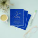 Parabéns no seu noivado. O elegante e moderno item de casamento Real Azul monocromático 📌 PIN esta design para o seu quadro de casamento em Pinterest e desfrute da sua jornada de planejamento de casamento. Este item é um de muitos em uma coleção de casamento que inclui uma variedade de layouts de tipografia. VEJA A COLEÇÃO ANEXADA PARA VER TODOS ELES. A maioria dos meus designs inclui campos de modelo de texto em ambos os lados (onde permitido pelo produto) para garantir que você obtenha o máximo de valor e benefício prático. No caso de convites e datas de salvamento, isso permite que você inclua rsvp, registro de presentes, site de casamento, detalhes de recepção e, nos designs mais recentes, um código de verificação de QR. Para outros itens, você pode adicionar texto ou imagens conforme necessário para o evento. ⭐ Obrigado por visitar, visite novamente em breve. ©Design e Text LeahG® www.lowbudgetwedding.network - weddingdesignchic.com - budgetweddinginvites.com.