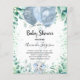 Por favor, note que este convite está no papel de folheto e é muito fino. Os envelopes não estão incluídos. Para convites mais espessos (mesmo design) visite nossa loja. Para um chá de fraldas, comemorando um menino. Um fundo branco. Decorado com balões azuis, um bebê elefante giro e eucalipto verde e faíscas verdes. Personalize e adicione o nome da futura mãe e os detalhes da festa. O nome e o texto: Chá de fraldas são escritos com um script de estilo manuscrito