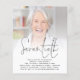 Uma ótima alternativa em PAPEL (não cartão) SEM ENVELOPES no tamanho menor 4,5” x 5,6” e a um preço acessível. (Envelopes padrão A6 são o tamanho mais próximo para caber). Convite de festa de aniversário de 70 anos com foto e texto manuscrito. Um design minimalista para sua festa de aniversário de setenta anos, com um conjunto elegante de texto manuscrito para o cabeçalho. Basta substituir a foto de amostra pela sua favorita e personalizar o restante do texto conforme necessário
