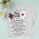 Convite perfeito para festas de despedida de solteiro! O design apresenta um fundo cinza claro com um contorno de linha preta com um valete de copas e um ás de copas no topo. Há texto personalizável em fonte preta onde você pode adicionar todos os detalhes da sua festa de despedida de solteiro ou festa de bacharelado.