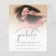 Convite de Festa de Formatura de Foto Simples em Papel 2022. Uma ótima alternativa em PAPEL (não cartão) em um tamanho MENOR 4,5” x 5,6” sem envelopes - envelopes padrão A6 são o tamanho mais próximo para caber. Um conjunto informal de tipografia em preto para o título principal Formatura complementando o restante do texto que você pode personalizar facilmente. Substitua a foto de amostra pela sua favorita.