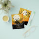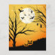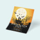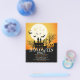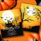 O design do Partido Figurino do Trick Treat do Halloween Halloween Haunted House apresenta uma casa assustadora e silhuetas de árvore, lua de cheio, morcegos e ilustrações de abóboras. Personalize com suas informações personalizadas.