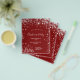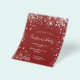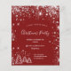 Por favor, note que este convite está em papel de folheto e é muito fino. Os envelopes não estão incluídos. Para convites mais grossos (mesmo design), visite nossa loja. Fundo vermelho clássico, com brilho de purpurina prateada falsa e árvores de Natal brancas de inverno como decoração. Com o texto: Festa de Natal escrito com estilo de letra manuscrita grande moderno e trendy. Personalize e adicione as informações da sua festa.