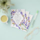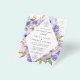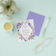 Lindas flores roxas e azuis empoeiradas criam uma moldura de diamante para cercar os detalhes da sua festa de noivado. Flores e folhas douradas abertas dão ao design um visual luxuoso.