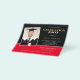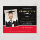Um alternativo PAPER (não cartão) com valor de excelente em um tamanho SMALLER de 4,5" x 5,6" sem envelopes - envelopes A6 padrão é o tamanho mais próximo ao ajustado. Convite de festas Dourado de Formando de Foto Preto Vermelho Preto PAPEL. Um design moderno com sua foto de formando e seu texto de na moda. Totalmente personalizável, isso tem letras brancas e douradas em um fundo preto com uma borda vermelha correndo ao longo da borda inferior. Troque facilmente a sua própria foto de orientação para retratos, e o texto também pode ser facilmente personalizado. Se desejar, clique na opção personalizar mais para alterar os estilos de fonte, as cores e também as cores de fundo.