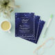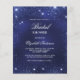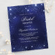Por favor, note que este convite está no papel de folheto e é muito fino. Os envelopes não estão incluídos. Para convites mais espessos (mesmo design) visite nossa loja. Um convite moderno, na moda, glamouroso para um Chá de panela. Um fundo azul marinho, decorado com faíscas de brilho. A cor azul é irregular. Personalize e adicione um nome e detalhes da parte.