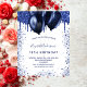 Por favor, note que este convite está no papel de folheto e é muito fino. Os envelopes não estão incluídos. Para convites mais espessos (mesmo design) visite nossa loja. Um convite de aniversário feminino do 18º (ou qualquer idade). Na frente: Um fundo branco. Decorado com gotas de brilho azul marinho, aspecto de pingar tinta e balões. Personalize e adicione um nome e detalhes da parte. O nome é escrito com um script de estilo manuscrito.