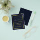 Por favor, note que este convite está no papel de folheto e é muito fino. Os envelopes não estão incluídos. Para convites mais espessos (mesmo design) visite nossa loja. Um fundo azul escuro, decorado com uma falso estrutura dourada. Personalize e adicione um nome e detalhes da parte. O nome é escrito com um elegante script de estilo escrito à mão. Fundo: fundo azul.