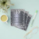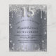 Um convite moderno, elegante e glamoroso para a festa de Quinceañera de uma garota, festa de 15 anos. Um fundo com aparência de prata falsa, decorado com purpurina. Personalize e adicione seu nome e detalhes da festa. O número 15 é escrito com uma fonte estilo balão, manuscrita.