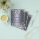 Um convite moderno, elegante e glamoroso para uma festa de aniversário de 80 anos. Um fundo com aparência prateada falsa, decorado com purpurina. Personalize e adicione seu nome e detalhes da festa. O número 80 é escrito com uma fonte estilo balão, manuscrita.