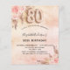 Um fundo com aparência metálica falsa rústica em rosa dourado e rosa bege. Decorado com flores rosa dourado e rosadas, rosas, grama pampas. Personalize e adicione um nome e detalhes da festa. O número 80 é escrito com uma fonte estilo balão.