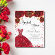 Por favor, note que este convite está no papel de folheto e é muito fino. Os envelopes não estão incluídos. Para convites mais espessos (mesmo design) visite nossa loja. Um convite moderno, na moda e glamouroso para um Bridal Showr. Um fundo branco com brilhos, um vestido vermelho e rosas vermelhas, florais. O nome é escrito com um moderno estilo escrito à mão. Personalize e adicione os detalhes da sua festa.