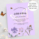 Por favor, note que este convite está no papel de folheto e é muito fino. Os envelopes não estão incluídos. Para convites mais espessos (mesmo design) visite nossa loja. Um fundo colorido violeta e lavanda. Decorados com abelhas e pintados de flores silvestres em violeta, rosa e uma borboleta grande. Personalize e adicione um nome e detalhes da parte.