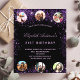 Por favor, note que este convite está no papel de folheto e é muito fino. Os envelopes não estão incluídos. Para placas mais grossas (mesmo design) visite nossa loja. Um convite de aniversário feminino e feminino de 21 ruas (ou qualquer idade). Na frente: Um fundo preto chic. Decorado com pó brilhante púrpura escura. Personalize e adicione um nome, detalhes da festa e 6 fotos. O nome é escrito com um script de estilo manuscrito, letras claras e roxas. Fundo: fundo preto e brilho sujo.