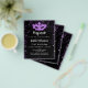 Por favor, note que este convite está no papel de folheto e é muito fino. Os envelopes não estão incluídos. Para convites mais espessos (mesmo design) visite nossa loja. Para uma Mascarada elegante, 21ruas (ou qualquer idade) festa de aniversário. Um clássico fundo negro. Decorado com faxes roxos e uma máscara de mascarada. Personalize e adicione um nome, idade e detalhes da festa. O nome é escrito com um script de estilo manuscrito
