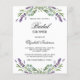 Por favor, note que este convite está no papel de folheto e é muito fino. Os envelopes não estão incluídos. Para convites mais espessos (mesmo design) visite nossa loja. Um fundo branco. Decorado com flores de lavanda violeta e verde de eucalipto. Personalize e adicione um nome e detalhes da parte. O nome é escrito com um script de estilo manuscrito.