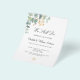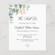 Um fundo branco chique. Decorado com folhas de eucalipto pintadas à mão em verde, raminhos, folhagem e um ramo falso dourado. Personalize e adicione seus nomes e detalhes da cerimônia. Letras pretas.