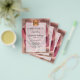Os detalhes em ouro rosa são simulados na arte. Nenhuma papel laminado rosa real será usado na fabricação deste produto.