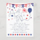 Um alternativo PAPER (não cartão) com valor de excelente SEM ENVELOPES com tamanho menor de 4,5" x 5,6" e a um preço orçamentário. (envelopes A6 padrão são o tamanho mais próximo ao ajustado). 4 de julho, Red White Blue Stars Script Convidado. Script de na moda para 4 de julho e CHURRASCO se movendo para a corda de um balão. Personalize facilmente o resto do texto.