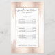 O seu nome ou o nome da sua empresa é exibido de forma elegante numa tipografia cursiva para causar uma impressão deslumbrante neste folheto de lista de preços de designer. Um fundo delicado de confetes caindo em rosa dourado falso dá a ilusão de brilho. Ótimo para artistas de maquiagem, cabeleireiros, salões de beleza, boutiques e muito mais. Arte e design © 1201AM Design Studio | www.1201am.com