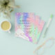 Por favor, note que este convite está no papel de folheto e é muito fino. Os envelopes não estão incluídos. Para convites mais espessos (mesmo design) visite nossa loja. Um convite moderno, na moda e glamouroso para uma Quinceañera, festa de aniversário 15. Um fundo holográfico cor-de-rosa, roxo e verde-menta, com brilho rosado sujo, faíscas e um vestido branco. O nome é escrito com um moderno estilo escrito à mão. Personalize e adicione os detalhes da sua festa.
