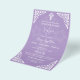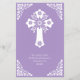 Um convite lilático orçamental com uma cruz floral branca para batismo ou batizar. Personalize os detalhes e mude batismo para batizar, se preferir. Parte da coleção Floral Cross.