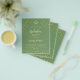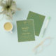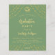 Por favor, note que este convite está no papel de folheto e é muito fino. Os envelopes não estão incluídos. Para convites mais espessos (mesmo design) visite nossa loja. Um fundo verde sábio decorado com estrelas douradas falsas e um boné. Personalize e adicione um nome, detalhes da festa e ano. O texto Graduação e o nome são escritos com um script de estilo moderno, escrito à mão.