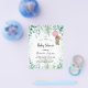 Por favor, note que este convite está no papel de folheto e é muito fino. Os envelopes não estão incluídos. Para convites mais espessos (mesmo design) visite nossa loja. Para um chá de fraldas, comemorando uma menina. Um fundo branco. Uma menina de ursos fofinhos segurando um balão rosa, eucalipto verde e faíscas verdes. Personalize e adicione o nome da futura mãe e os detalhes da festa. O nome e o texto: Chá de fraldas são escritos com um script de estilo manuscrito
