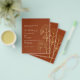Por favor, note que este convite está no papel de folheto e é muito fino. Os envelopes não estão incluídos. Para convites mais espessos (mesmo design) visite nossa loja. Um terracota tendencioso, fundo cor de terra poeirento, decorado com simples folhas de ginkgo de ouro. Personalize e adicione seus nomes e detalhes.