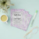 Por favor, note que este convite está no papel de folheto e é muito fino. Os envelopes não estão incluídos. Para convites mais espessos (mesmo design) visite nossa loja. Um chá de panela moderno e elegante. Fundo de aspecto fino prateado decorado com faíscas roxas e uma borboleta grande. Personalize e adicione um nome e detalhes da parte. Letras pretas coloridas.
