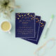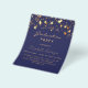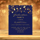 Por favor, note que este convite está no papel de folheto e é muito fino. Os envelopes não estão incluídos. Para convites mais espessos (mesmo design) visite nossa loja. Um convite glamouroso para uma festa de formatura 20xx (ou qualquer ano) para ele e para ela. Um fundo azul marinho decorado com estrelas douradas falsas. Personalize e adicione um nome e detalhes da parte. O texto Graduação e o nome são escritos com um script de estilo moderno, escrito à mão. Texto colorido do ouro. Fundo: fundo preto e estrelas ouros.