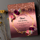 Por favor, note que este convite está no papel de folheto e é muito fino. Os envelopes não estão incluídos. Para convites mais espessos (mesmo design) visite nossa loja. Na frente: um convite para uma festa de aniversário de 50ª (ou qualquer idade). Um fundo de gradiente arrojado com uma falso estrutura geométrica dourada. Decorados com flores roxas escuras e burgueiras, rosas e penas do estilo "boho". Lixiviação de bronze falsa. Modelos para um nome e detalhes da festa. O nome é escrito com um script de estilo manuscrito, letras pretas.