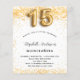 Por favor, note que este convite está no papel de folheto e é muito fino. Os envelopes não estão incluídos. Para convites mais espessos (mesmo design) visite nossa loja. Para uma elegante Quinceañera, 15 festa de aniversário. Um fundo branco chic. Decorado com brilho de ouro falso, brilhos. Personalize e adicione um nome, idade e detalhes da festa. O nome é escrito com um script de estilo manuscrito. Número 15 com letra de estilo de balão.