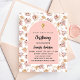 Por favor, note que este convite está no papel de folheto e é muito fino. Os envelopes não estão incluídos. Para convites mais espessos (mesmo design) visite nossa loja. Um quadro de arco sobre um padrão de grama pampas e flores cor-de-rosa e uma cruz ouro. Personalize e adicione um nome e detalhes.