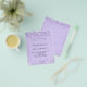 Por favor, note que este convite está no papel de folheto e é muito fino. Os envelopes não estão incluídos. Para convites mais espessos (mesmo design) visite nossa loja. Para uma elegante festa de aniversário 40th (ou qualquer idade). Um fundo colorido violeta e lavanda. Decorado com brilho violeta. Personalize e adicione um nome e detalhes da parte. O nome é escrito com um script de estilo manuscrito